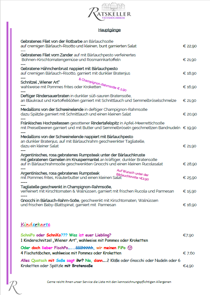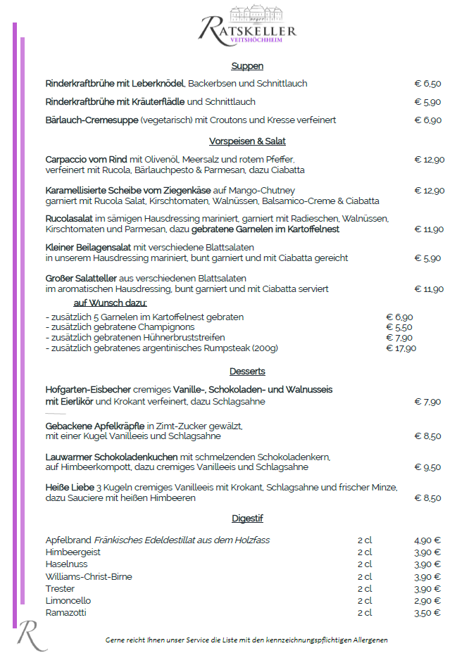 Ehrliches Handwerk, freundlicher, kompetenter Service und ein gutes Preis-Leistungs-Verhältnis ist Herzenssache im Ratskeller Veitshöchheim – überzeugen Sie sich am besten selbst.